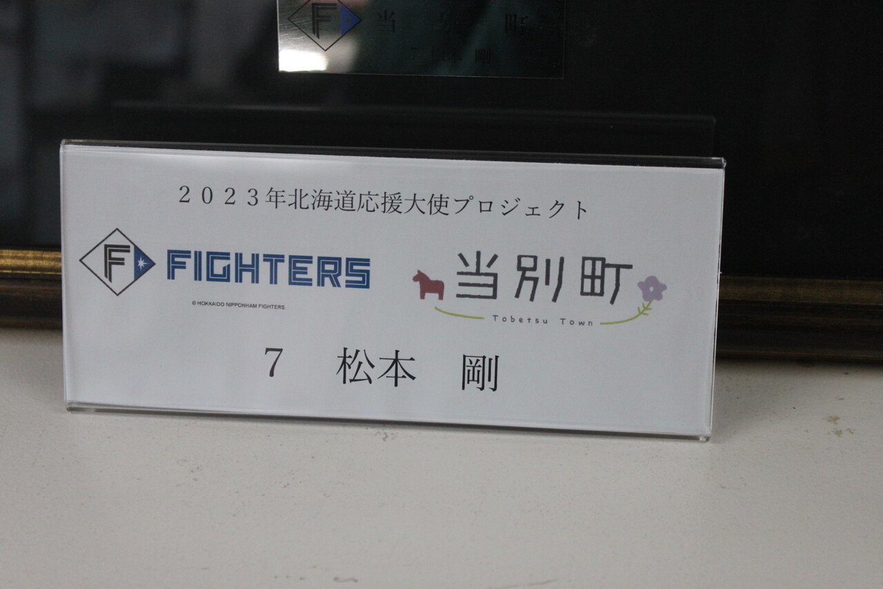 松本剛選手のユニフォームが飾られていますが、令和5年からのこの企画は特定選手が自治体を推すわけではないため、松本剛選手が当別町推しというわけではないようです。
