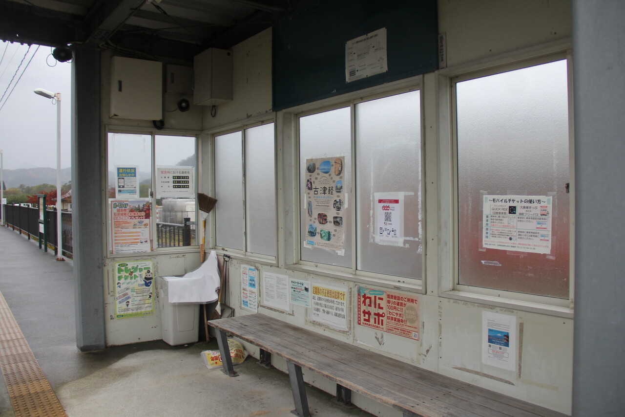 スロープ出入口・1面1線・簡易な待合スペース、この3点セットはほぼ同時期に設置された宿川原駅・田んぼアート駅とほぼ同一デザインです。