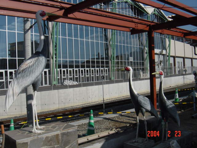 鶴の飛来地として名高い土地なので駅のそこらあちこちに鶴をモチーフにしたものが設置されています。