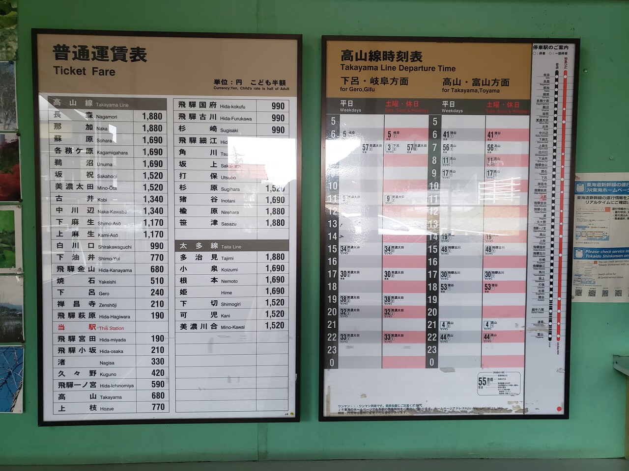 駅名の「上呂」は温泉でメジャーな「下呂」と対になっている地名のようで、この他に駅名にはなっていませんが「中呂(ちゅうろ)」という地名もあるようです。