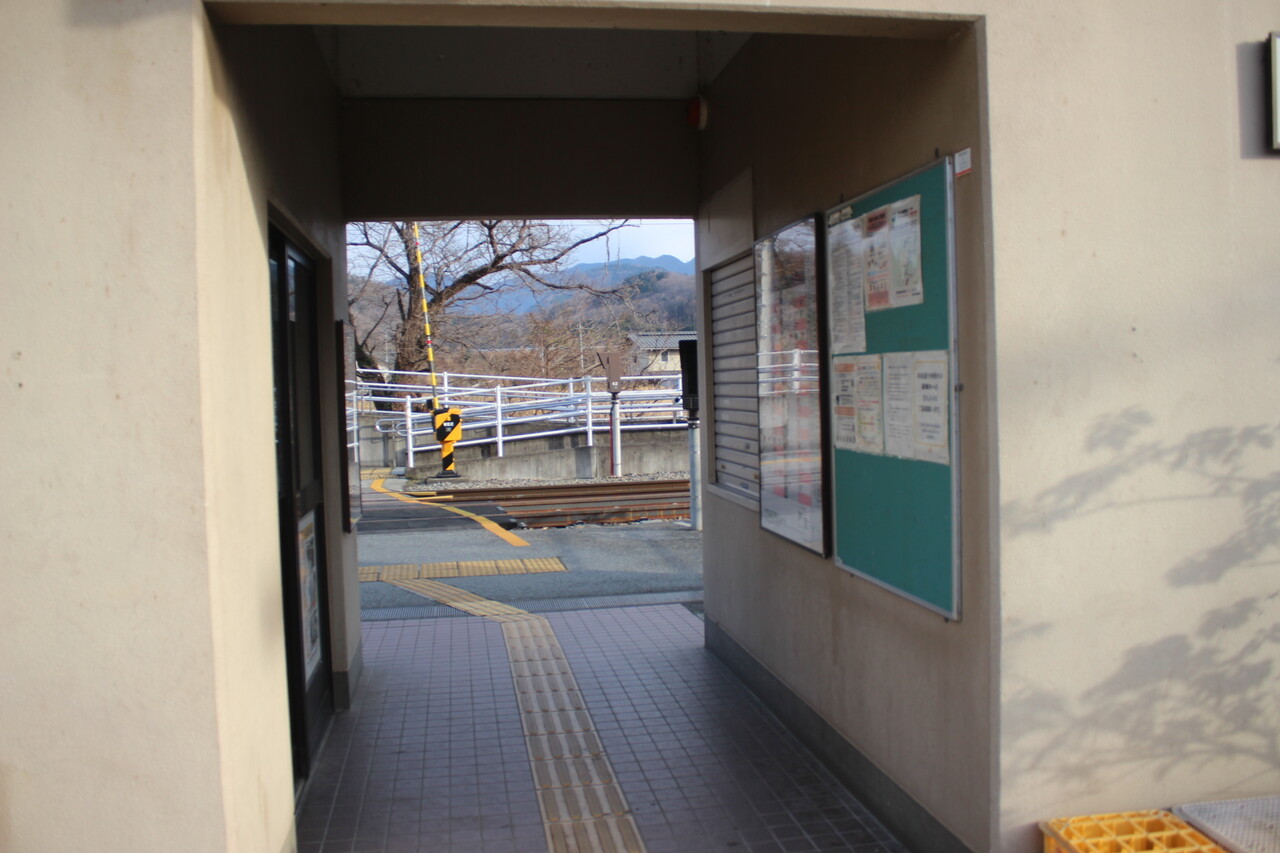 駅舎を出ると構内踏切からの駅構内です。