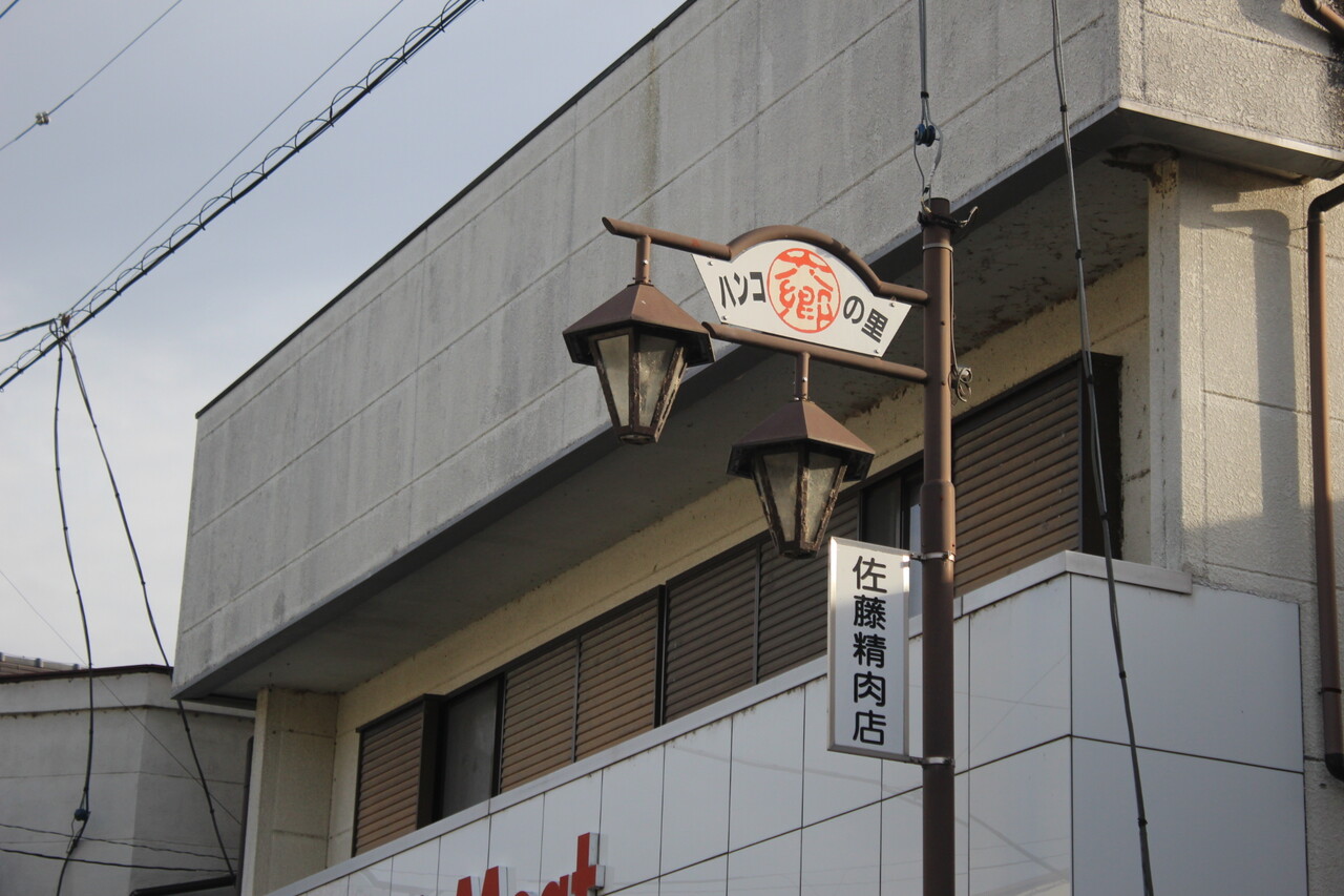余談ですが駅前に面している履物店の看板が令和に残したい古さ。。。「月星シューズ地下タビ」は現在も販売が続くロングセラー商品だったりします。