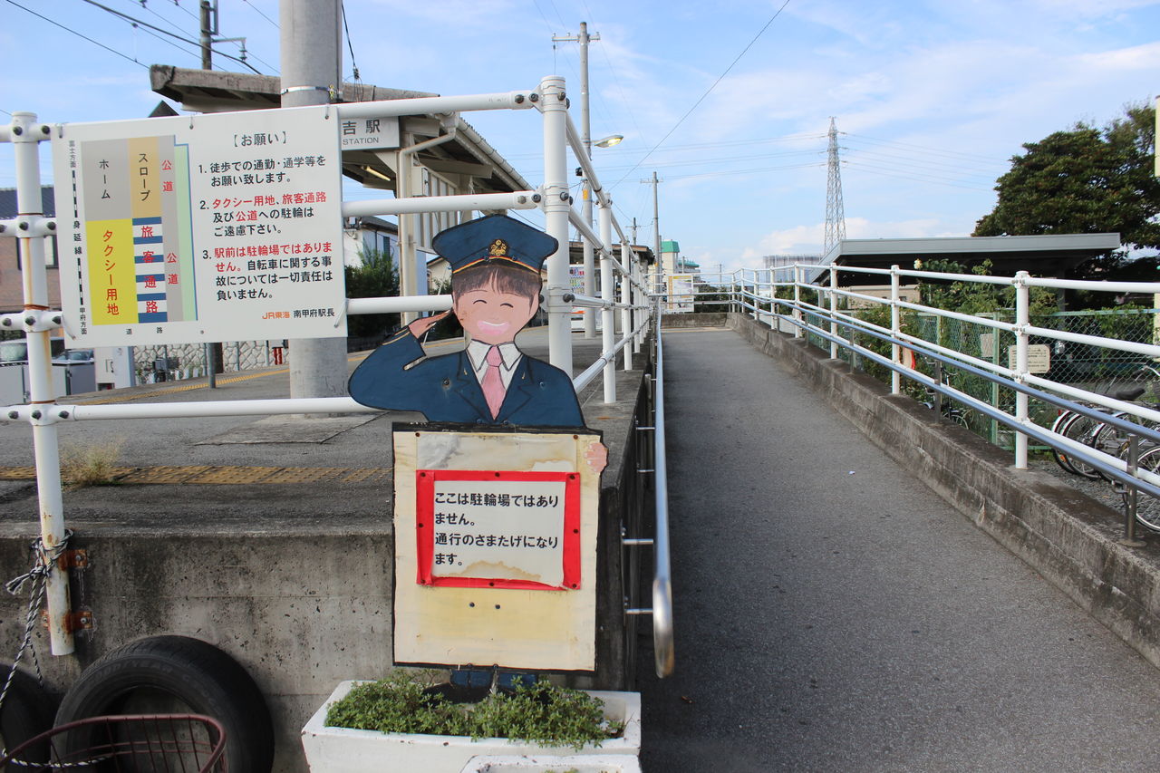 JR東海の制服をまとった若手社員を模した看板で注意喚起をするもののあまり効果はなさそう。。。