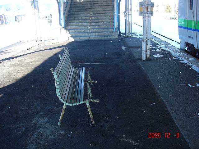 少しオシャレな形状のベンチ(2018年訪問時は撤去されていました)…これも急行停車駅だった証なのかも知れません。