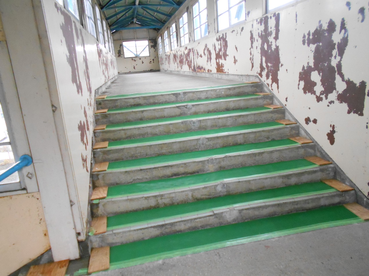 古びた跨線橋の内部は滑り止めが設置されていて「まだまだ使い倒すぞ!」といったモノを大切にする心意気が感じられます