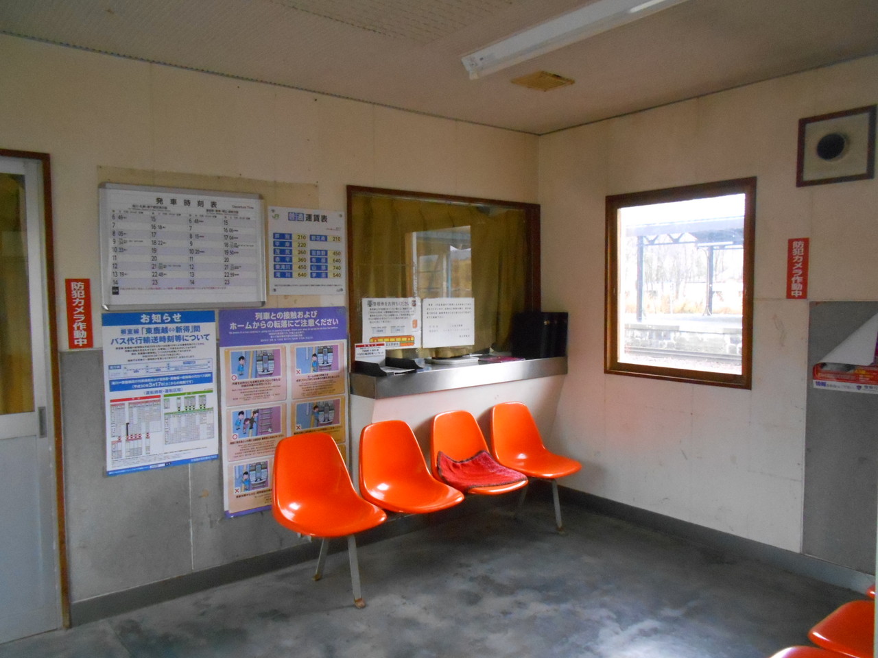 当駅は駅舎が現在のものに置き換わってから少しだけの間、簡易委託による乗車券類販売が行われていましたが、それもあっという間に廃止されています。そんな名残りの窓口が綺麗に残っています。