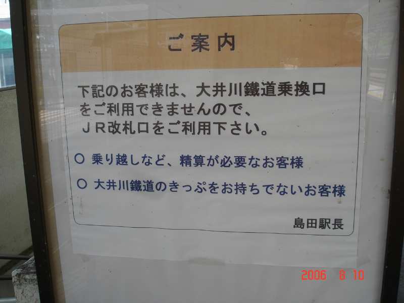 JRと大井川鉄道との間には乗り換え改札が設置されています。以前は有人改札でしたが、TOICA導入後は自動改札機が設置されています。