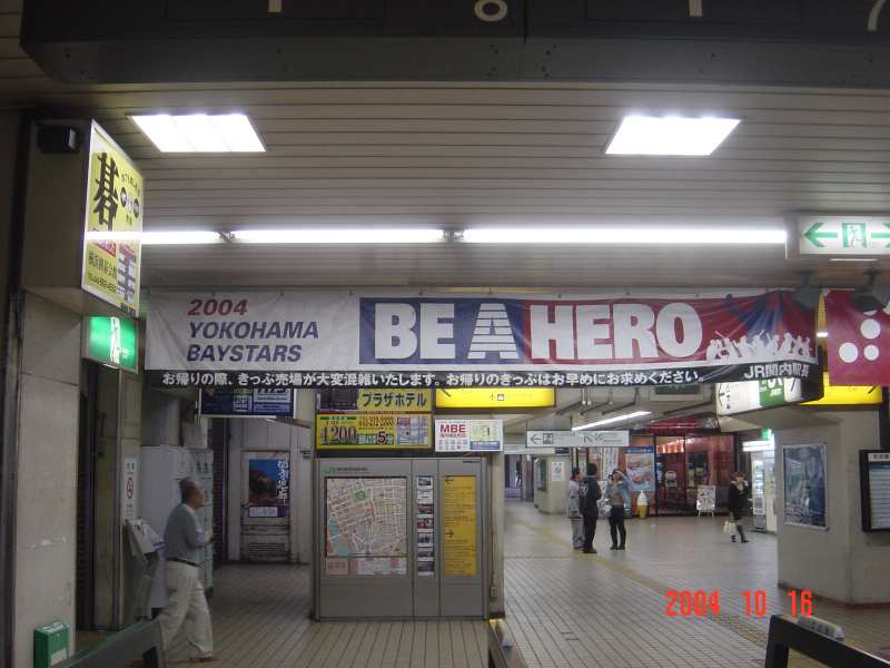 改札口には当時の横浜ベイスターズのスローガン「BE A HERO」の横断幕が掲げられていますが、駅としてはスローガンよりも最下段に書かれている「お帰りの際、きっぷ売り場が大変混雑します・・・」の文言の方が大切だったりするんでしょうね。