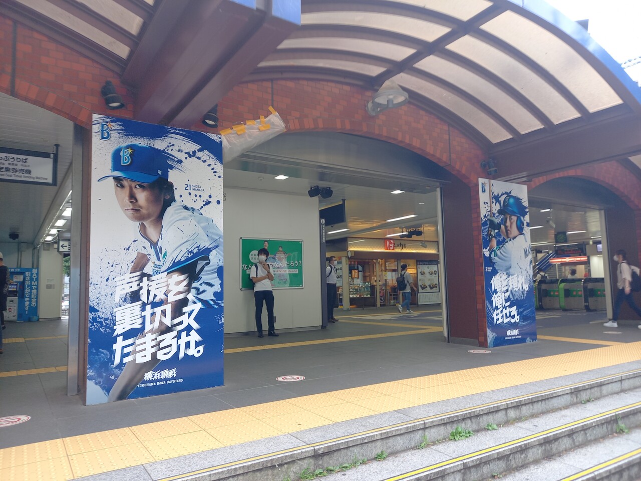 ベイスターズ装飾をした駅の様子です。