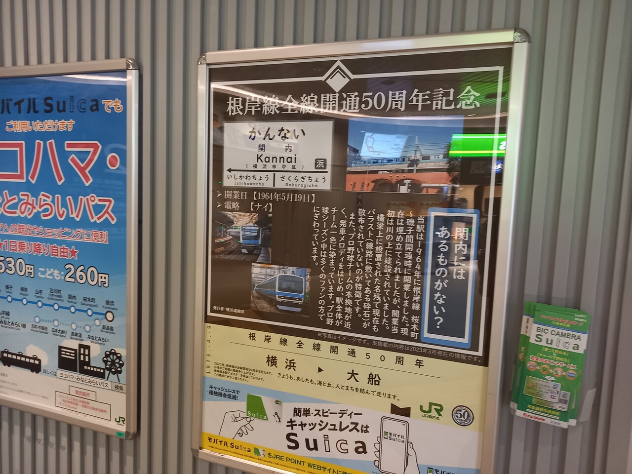 訪問時、JR根岸線は開業50年を迎え、各駅でオリジナルポスターを掲示していました。
