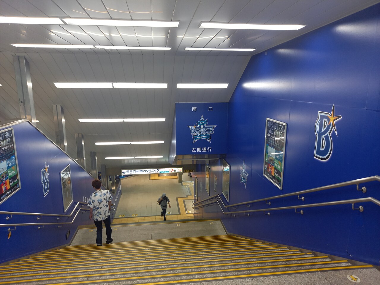 南改札へ至る階段もベイスターズ一色です。