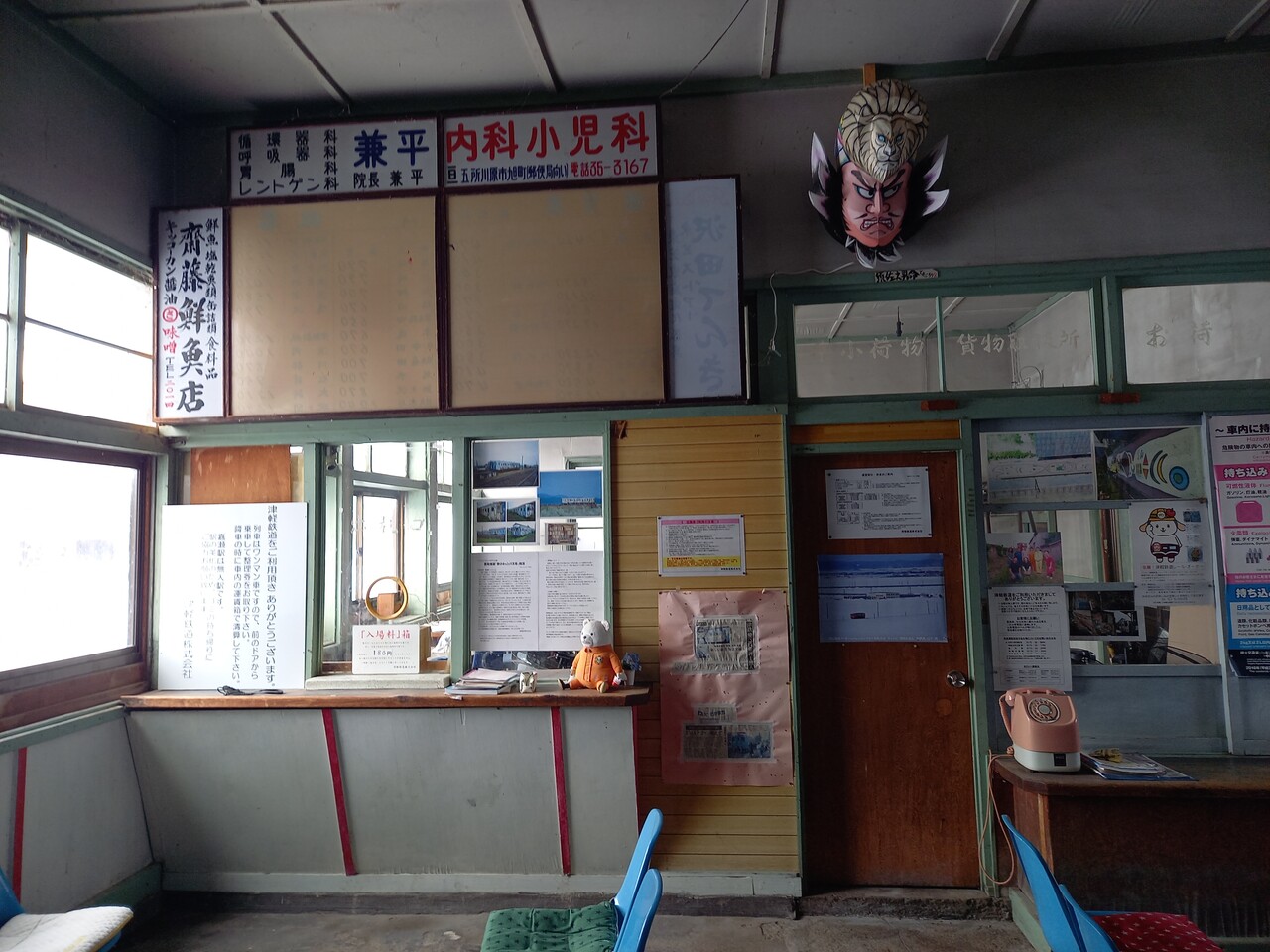 建物内部の様子です。近年まで営業をしていただけのことはあり、現役感がある出札窓口が存在感を示しています。