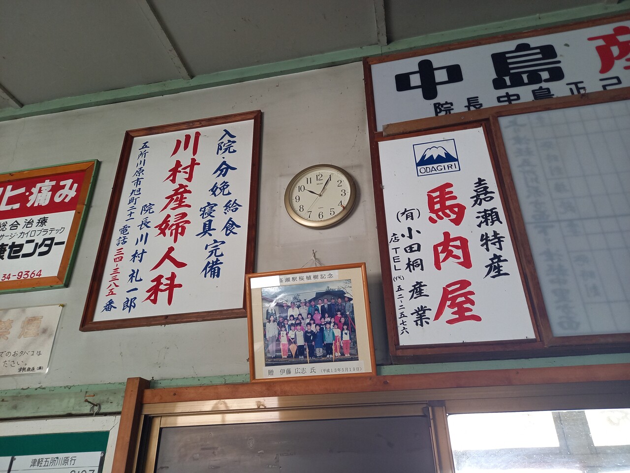 「嘉瀬特産 馬肉屋」の看板が気になるところです。どうやら当駅から極めて至近距離にあるお店で売られているようで、次回訪問時はぜひ来店したくなります。