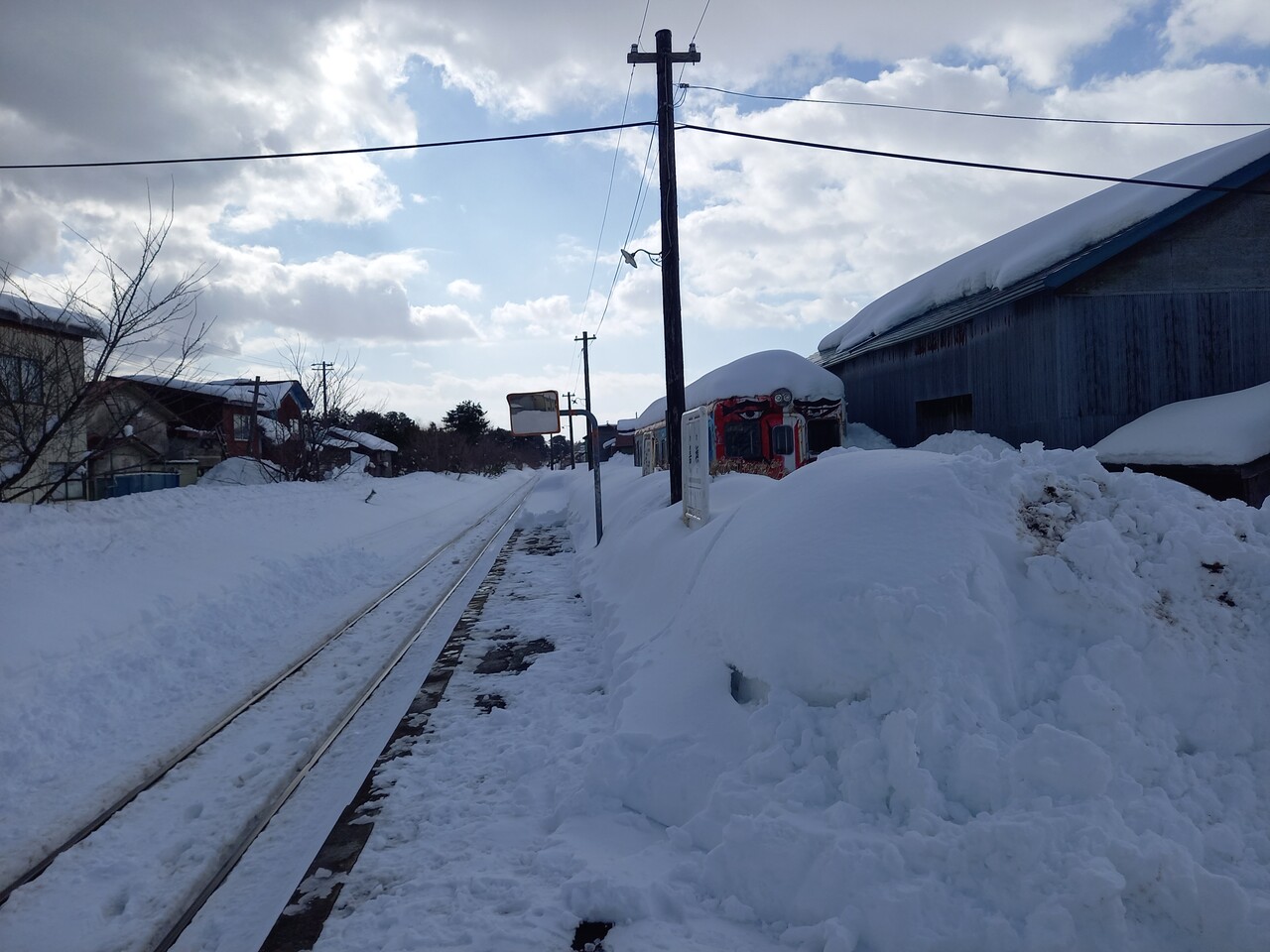 ホームと駅舎の間はこんな感じ。雪があるのでわかりにくいですが、この間には古い線路跡があります。前述のSMAP車両はその線路跡を活用して留置しています。