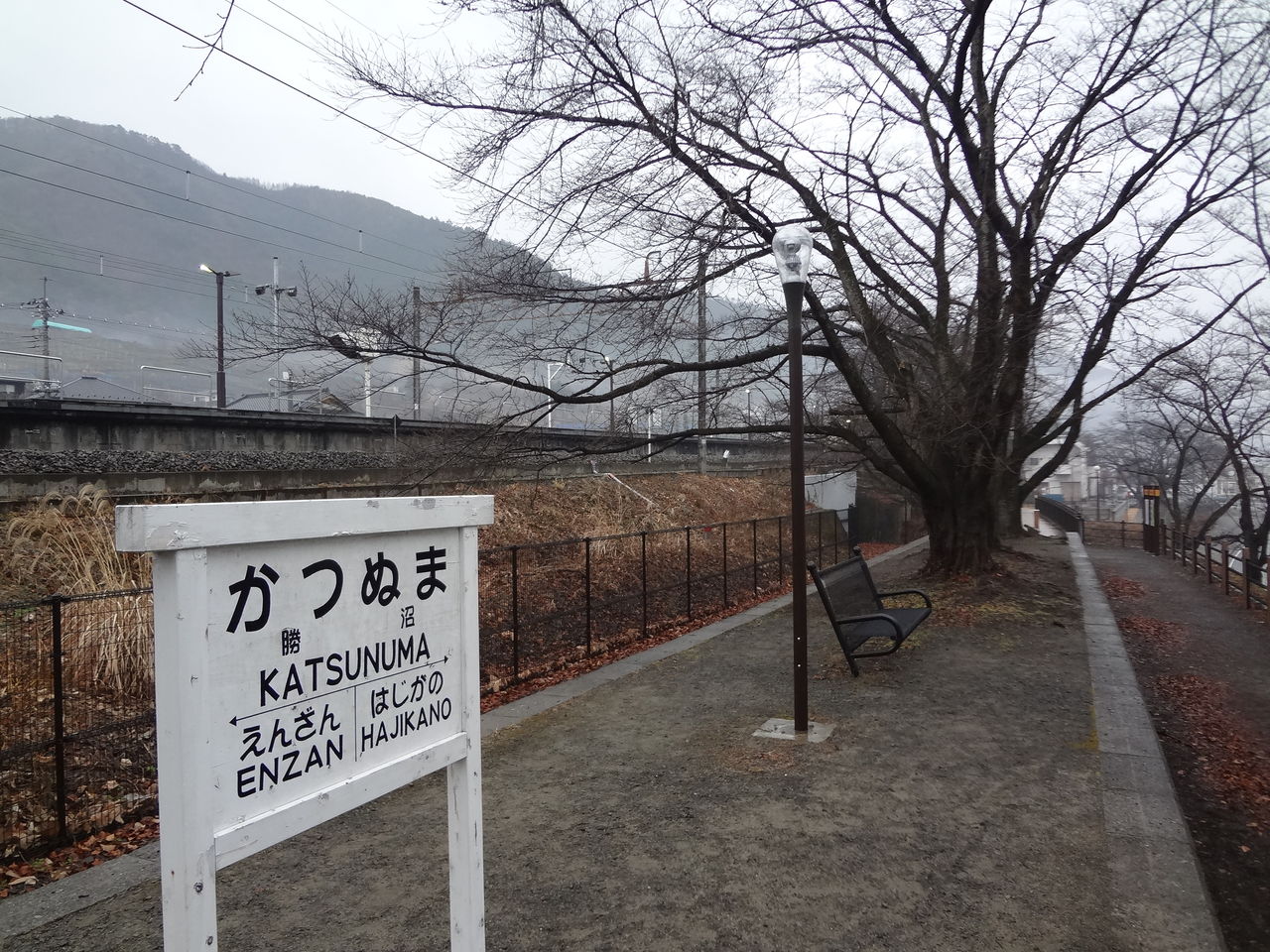 現在の線のすぐ下に旧線の遺構があり、当時のホームが再現されていて公園として整備されています。