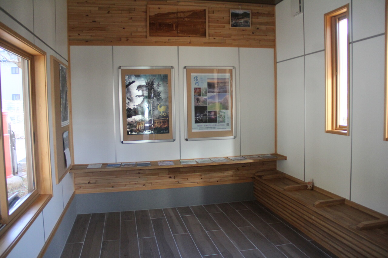 ホーム内の待合室も新造されていて、この内部もとても居心地がいいキレイなつくりになっています。