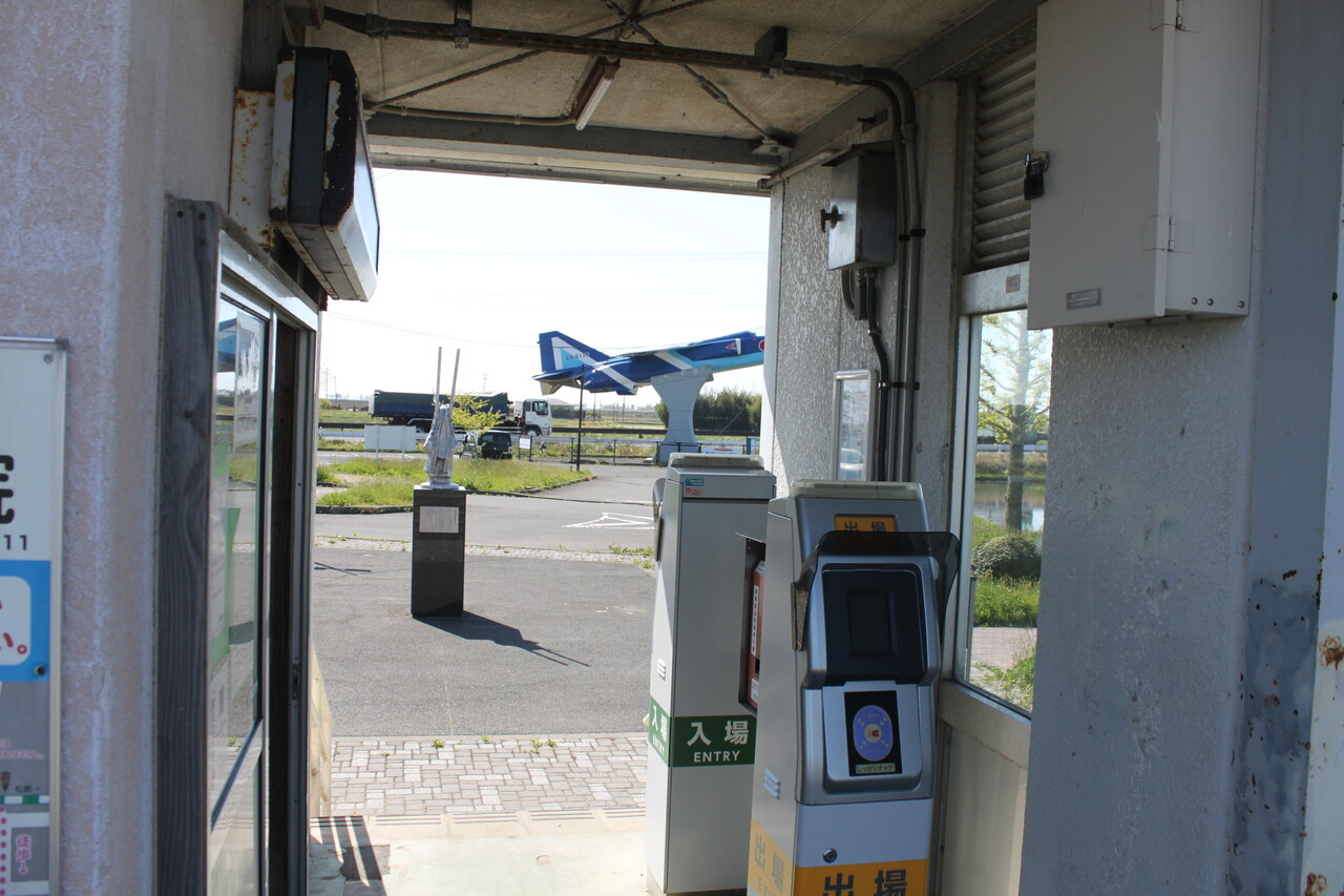 駅舎を背にして外を見た様子です。当駅と言えば何といっても駅前広場で異彩を放つ飛行機が目立っています。