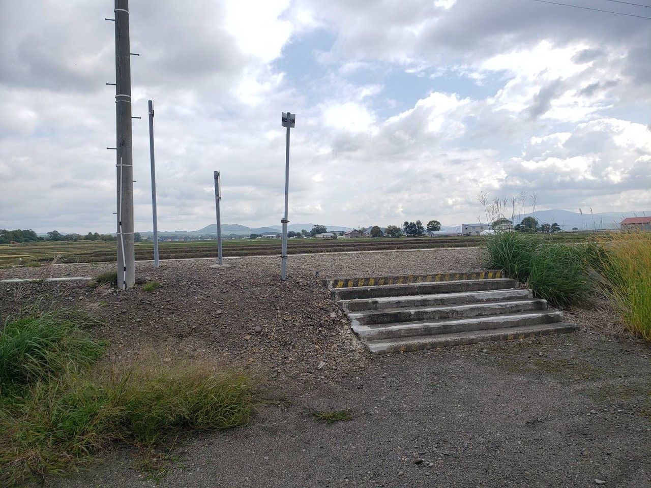 この階段と駅舎の間の微妙な空間ですが、貨物列車の引込線があったわけでもなさそうで、なんだったのかは謎です。