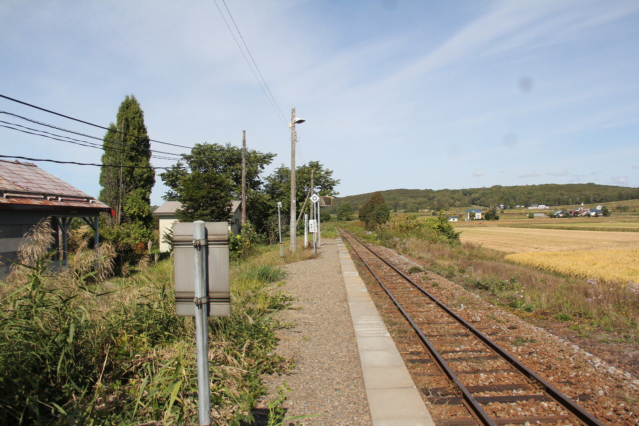 構内は単線上の1面1線。普通列車のうち早朝の増毛行きと夜間の深川行きは通過してしまいます。