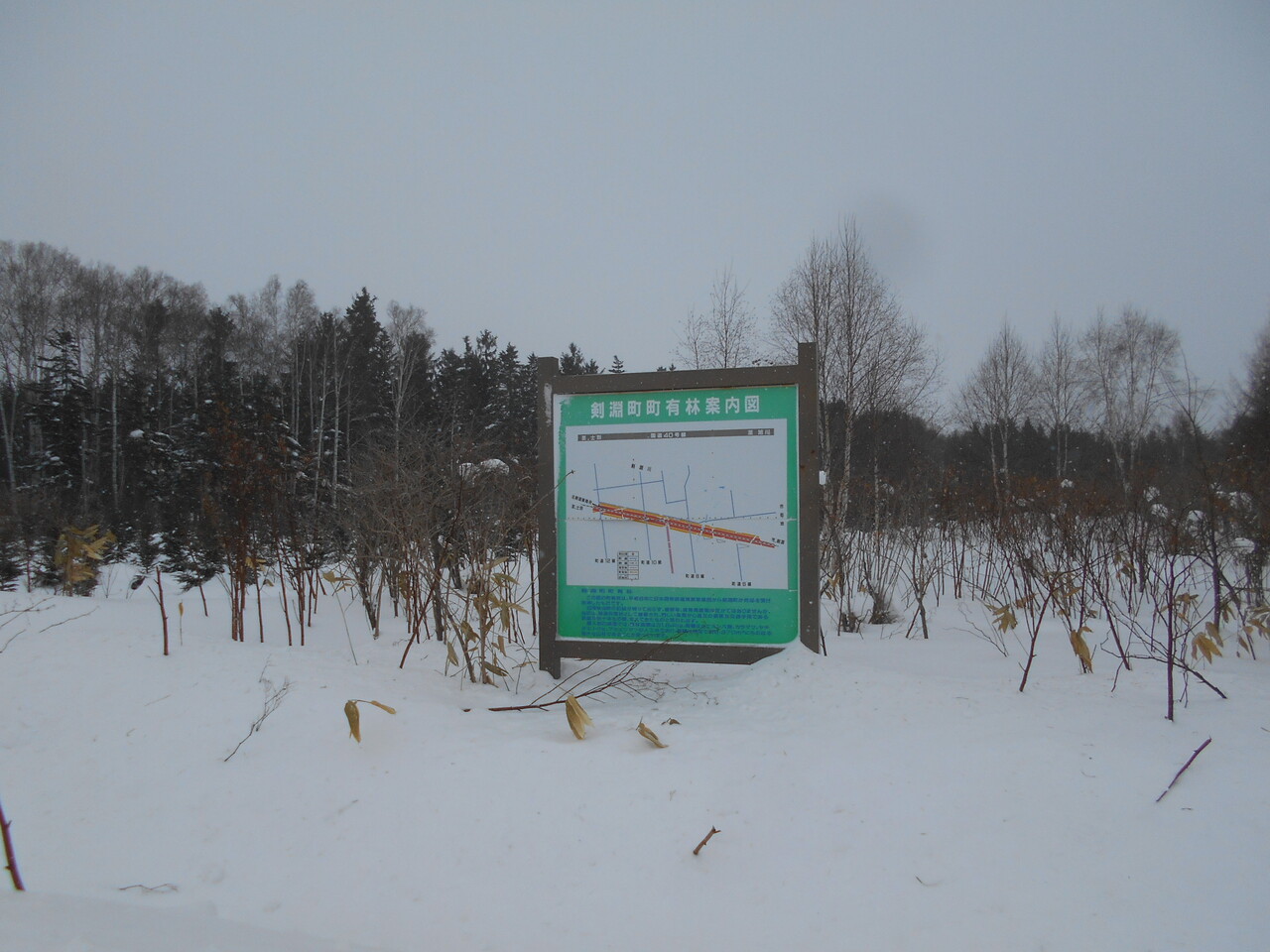 防雪林は実際には「剣淵町町有林」で、1997年に国鉄清算事業団より売却を受けて現在に至っているようで、JRが管理している防雪目的の林ではなくなっています。この町道を更に進むと国道40号に突き当り、道央自動車道・士別剣淵インターがあります。