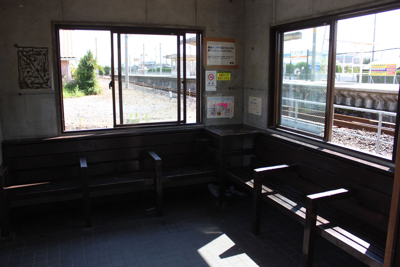 駅舎内は隣の常永駅とほぼ同様の待ち合いスペースですが、当駅には椅子が設置されています。