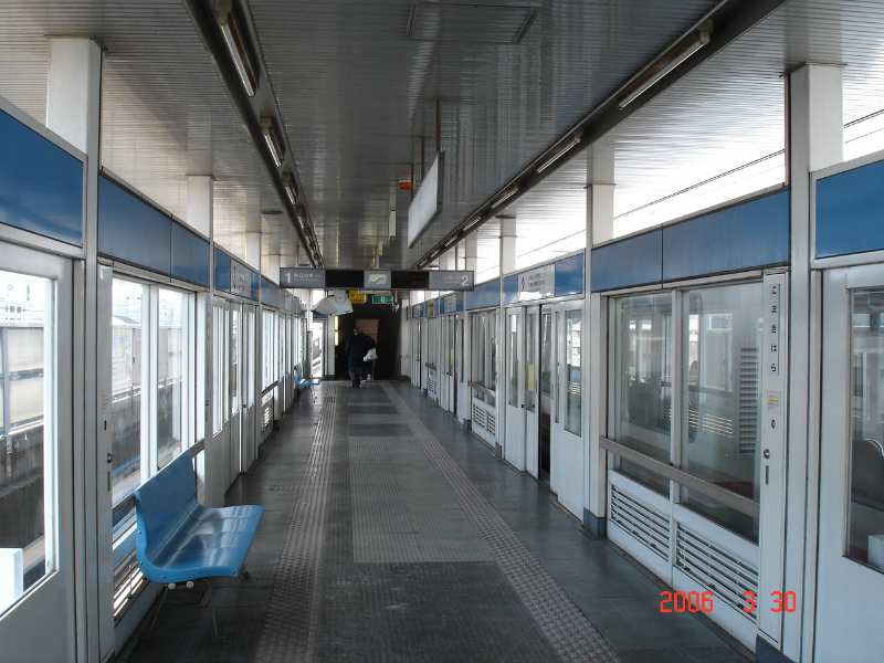ピーチライナーの各駅は全て1面2線で、厳重なホームドアで列車到着時以外はホームの外に出られない仕組みになっていました。
