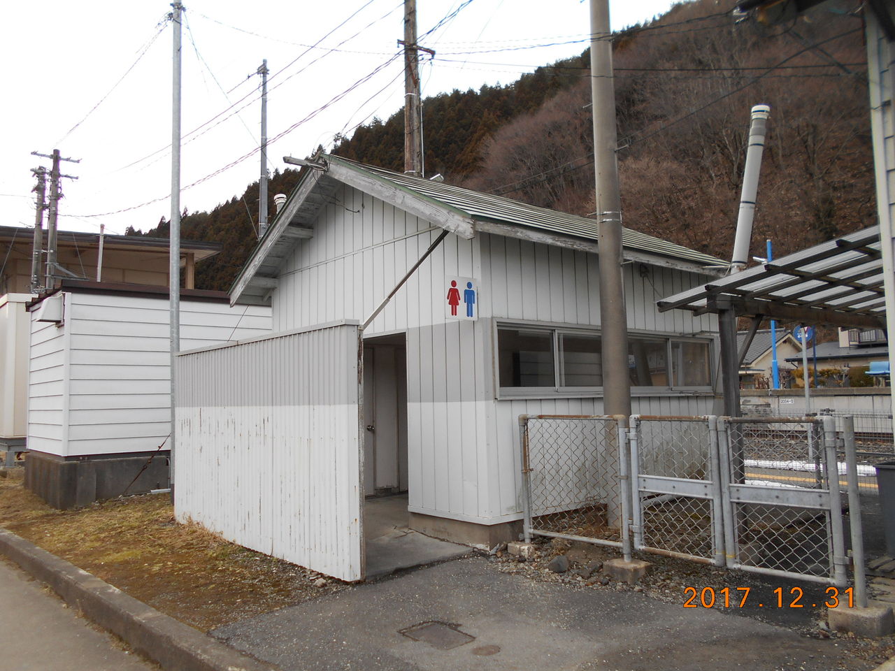 当駅のトイレは駅舎の外の国道沿いから出入りします。駅舎と同じような歴史を感じる男女兼用トイレになっています。