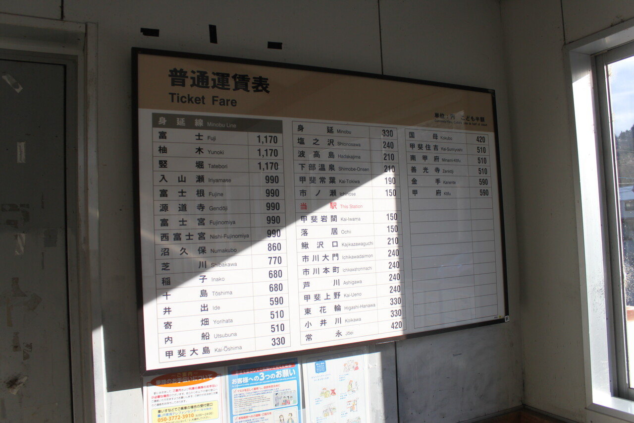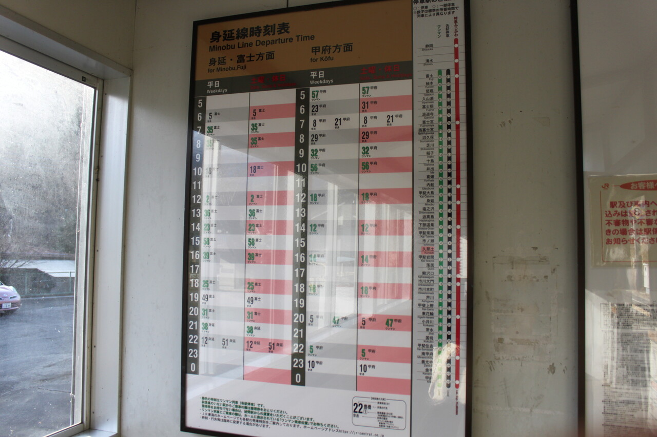 昭和31(1956)年までは独立した自治体の中心地(西八代郡久那土村)であったそうですが、現在は身延町の一部となっています。旧久那土村役場がどこにあったかは不明ですが、現在の身延町久那土出張所は当駅から徒歩20分ほど離れた場所にあります。
