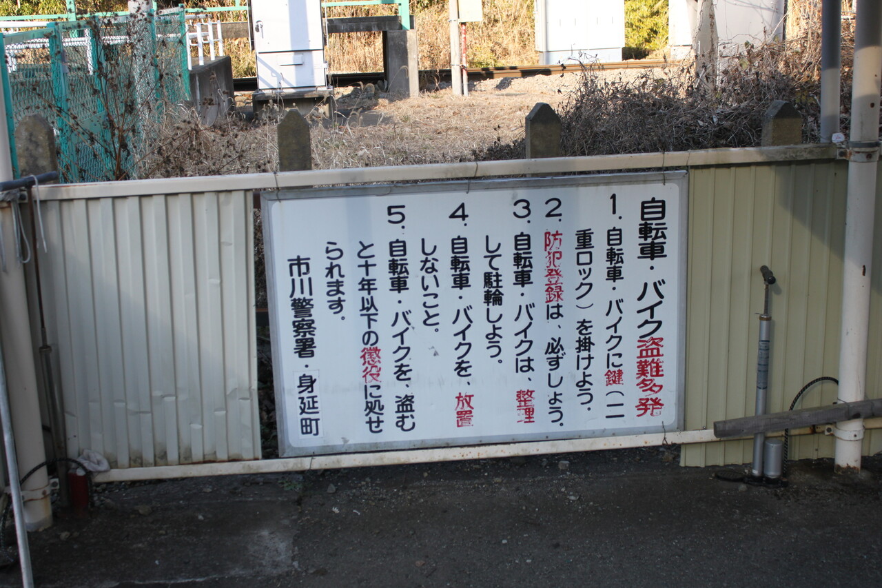 当駅に近接して自転車の駐輪場があり、このような掲示があります。