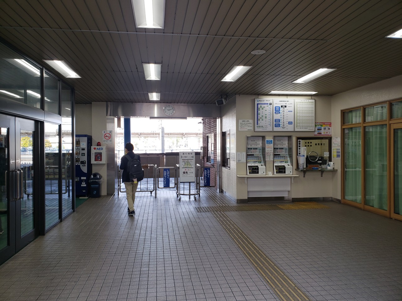 駅舎内の様子です。水臨さんの駅では唯一、券売機・改札口・待合室が備わっていて、駅っぽい風情が漂っています。また、終日に渡り駅係員が配置されていて、当駅で降車の場合は車内での料金収受ではなく改札口での処理となります。