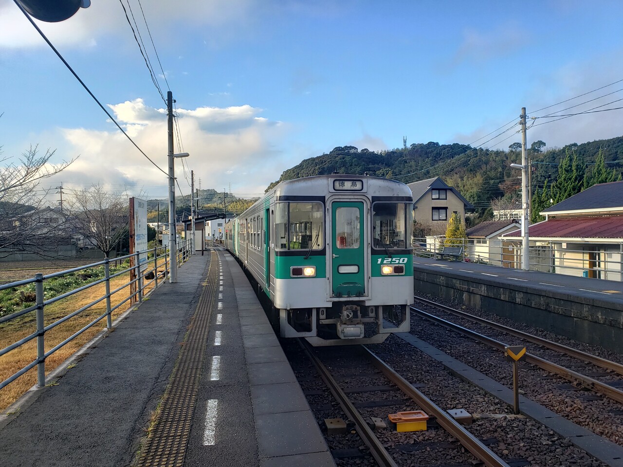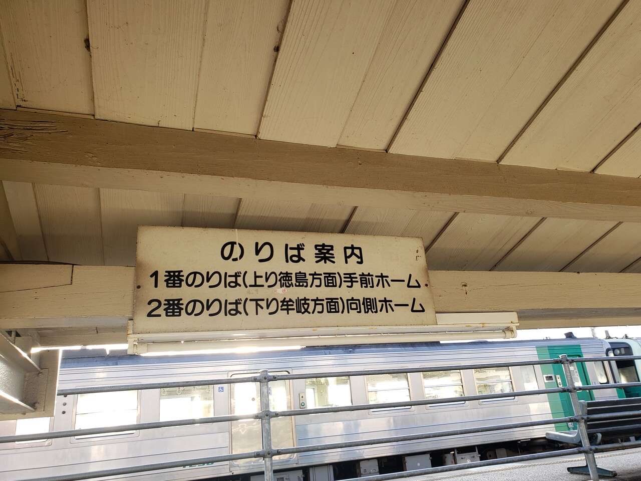 単線ですが信号設備の都合で駅舎に接している1番線に列車が集中するようなはなく、利用が多い(であろう)阿南・徳島方面列車は2番のりばから発車します。
