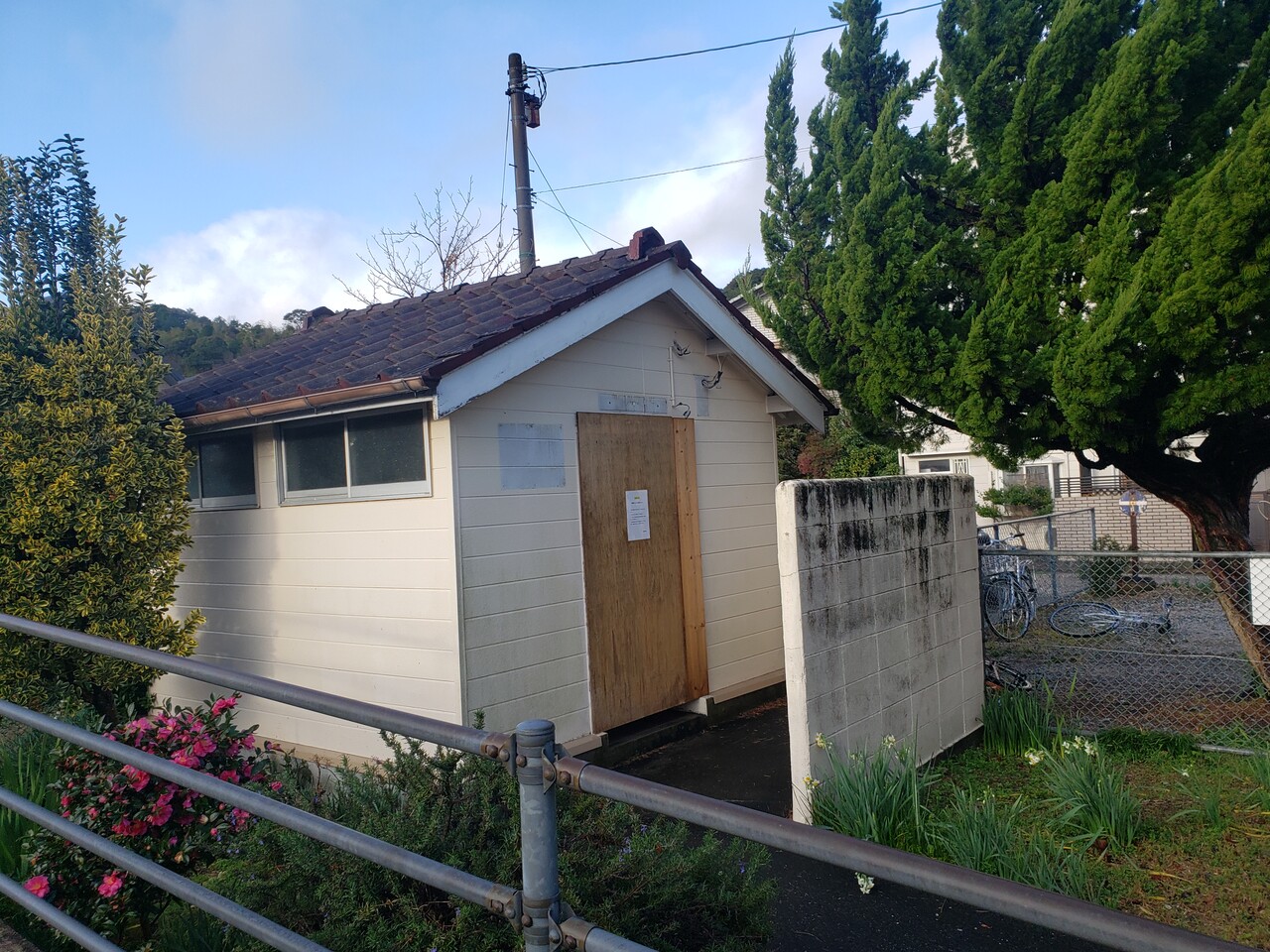 駅の傍らにはトイレがありましたが、老朽化により閉鎖されています。トイレ設備の撤去はこの時点では未実施でした。