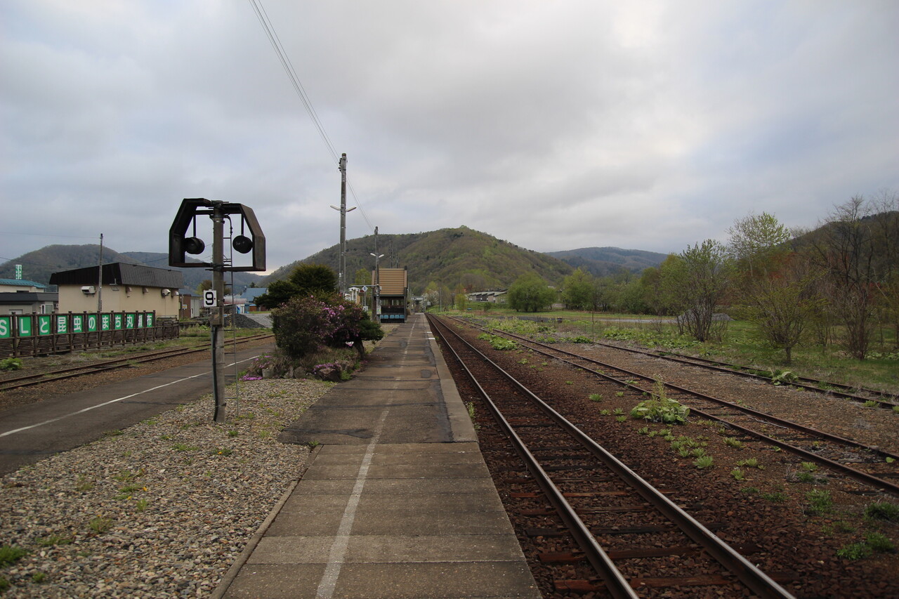構内の様子です。林業で栄えた旧丸瀬布町の中心駅であった当駅。貨物の取り扱いがあったころを偲ぶことができる側線の多さ。