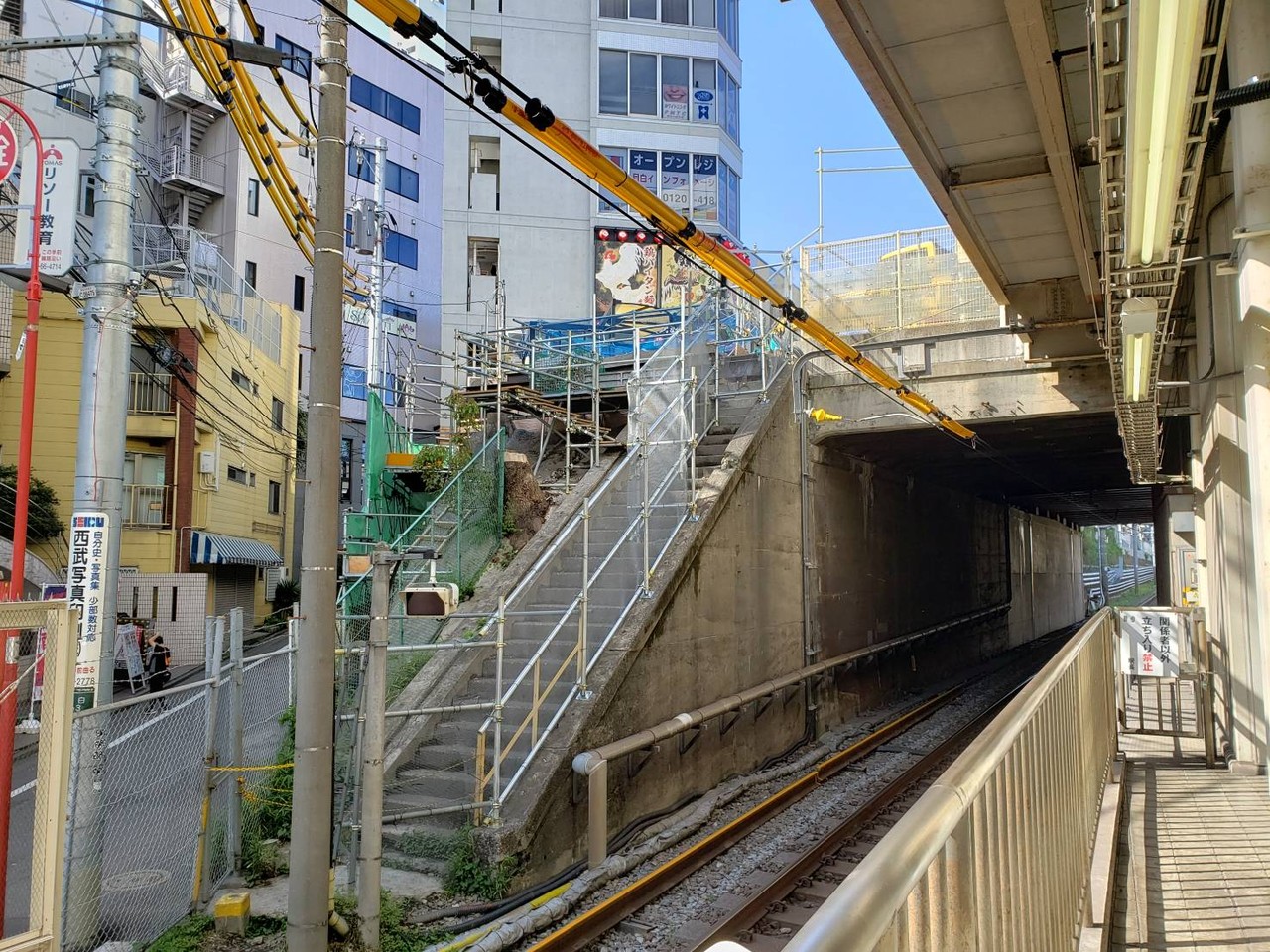 池袋駅寄りの謎の階段、物々しくフェンスが設置されていて、いよいよ終焉間近?!