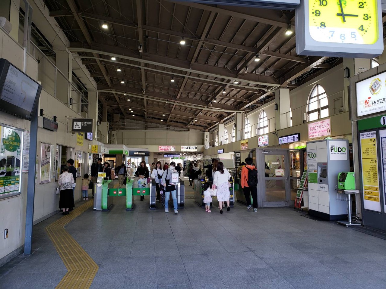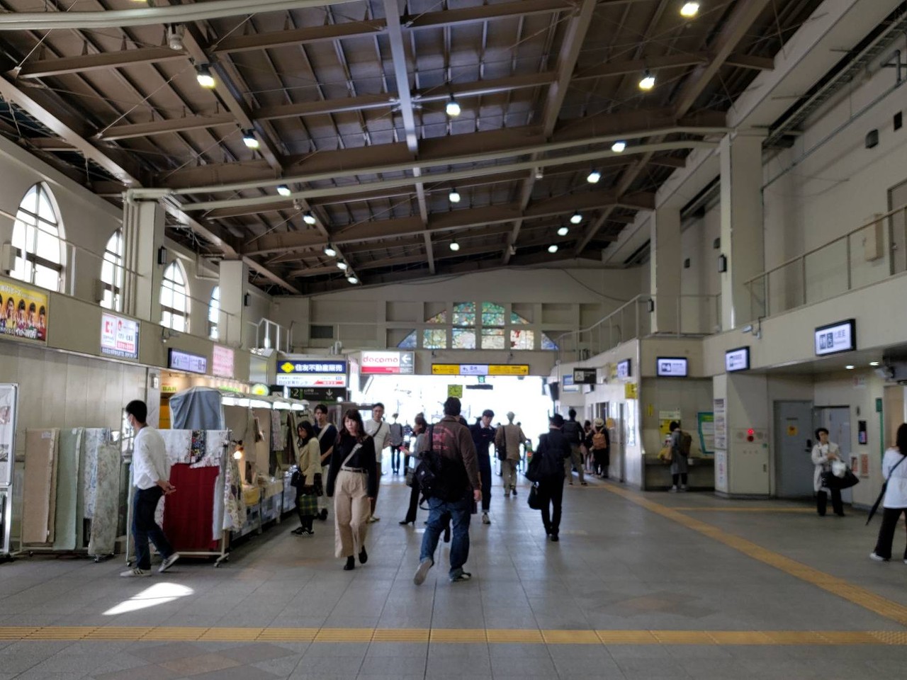 広い改札内スペースを生かし、臨時物販スペースが出ていてにぎやかな印象です。