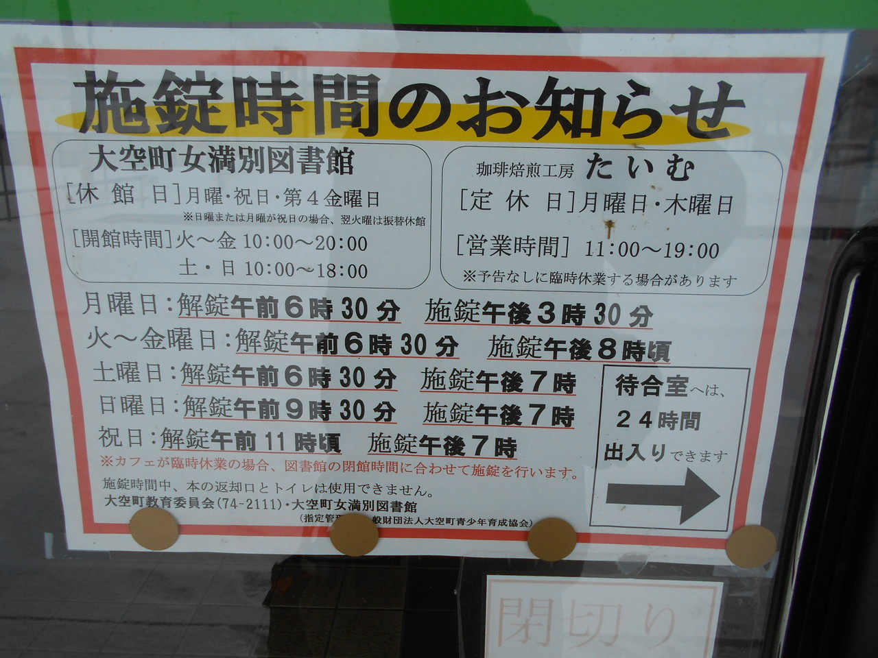 なお、この待合室の開錠及び施錠時間はご覧の通りです。