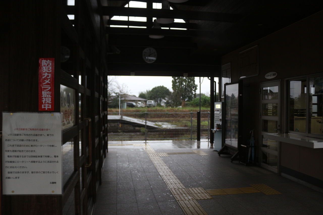 駅舎は立派ですが無人駅です。食券タイプの自動券売機が稼動しています。券売機手前に係員さんが詰めている場所がありますがこれは駅機能とは無関係で、地元のコミュニティバスの事務所のようです。