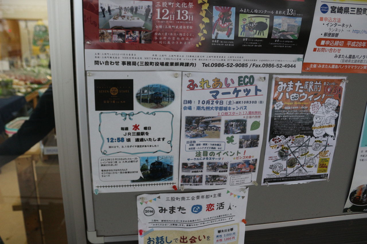 物産館の掲示板にはJR九州の看板列車・ななつ星in九州の当駅通過予定時刻が掲出されています。