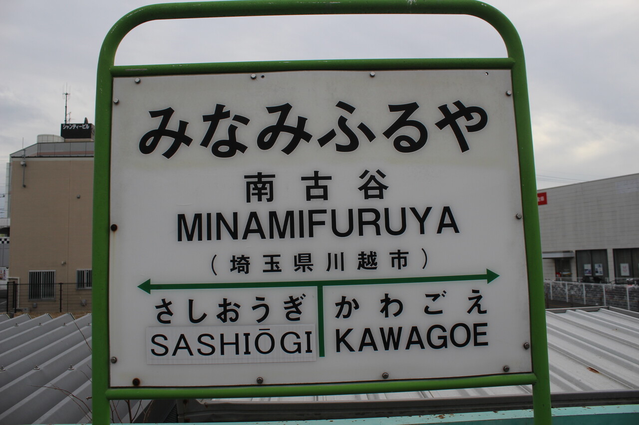 ホームの案内看板です。埼玉県川越市で見る相鉄線の文字にいまだに新鮮な違和感を覚える相鉄沿線民な筆者です。