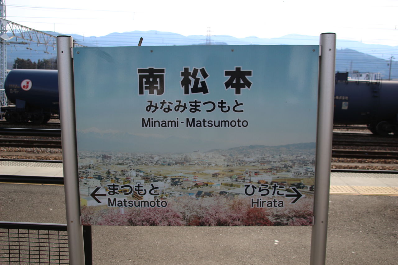 駅前は商店街っぽいものは無く、徒歩圏にイオン南松本店がありますがどちらかというと住宅街の駅と言った印象です。