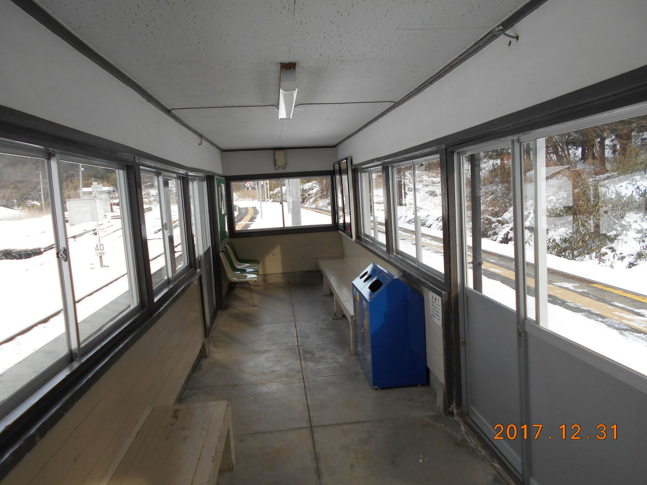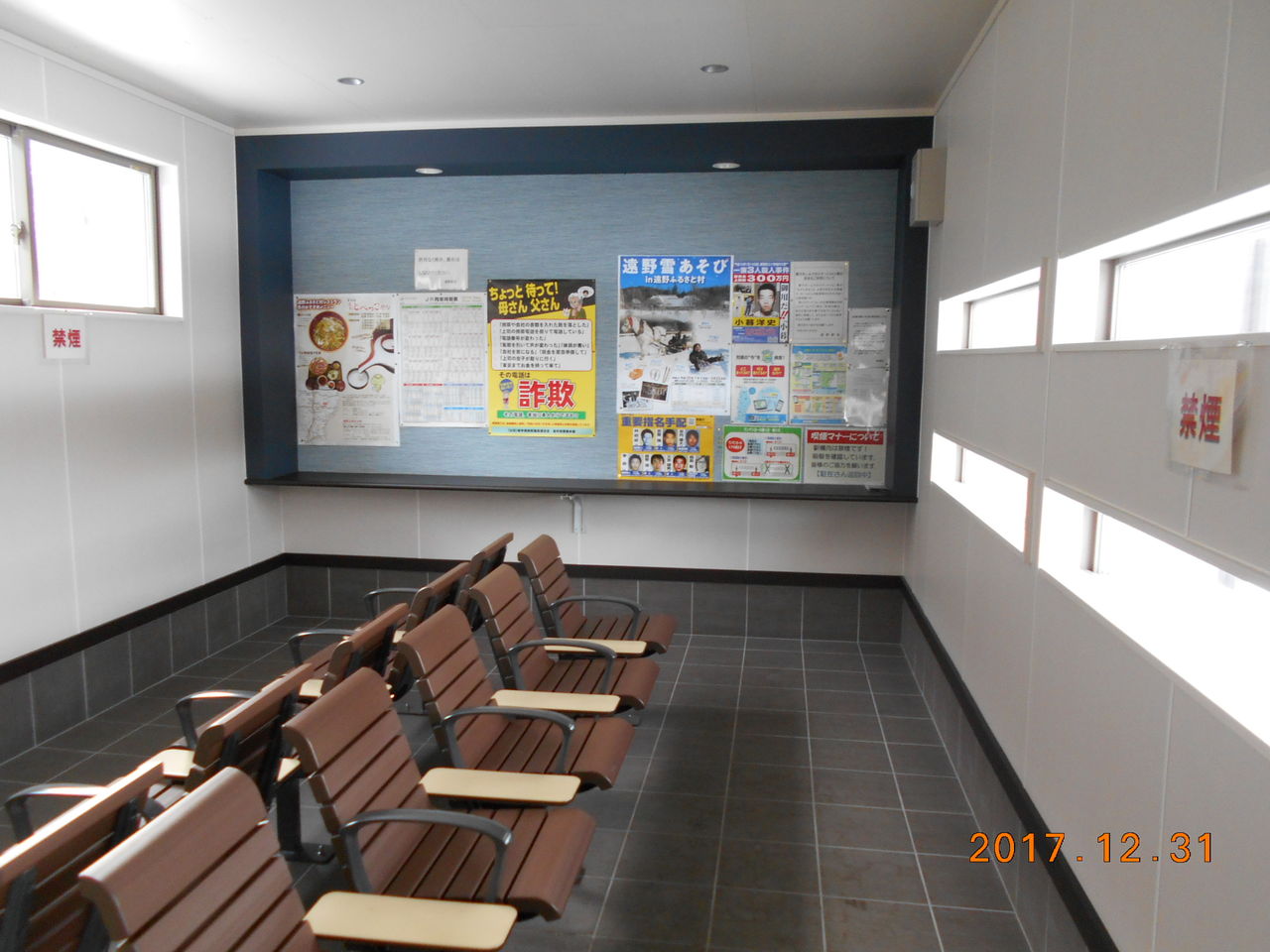 待合室内はご覧の通りで椅子が並んでいます。
