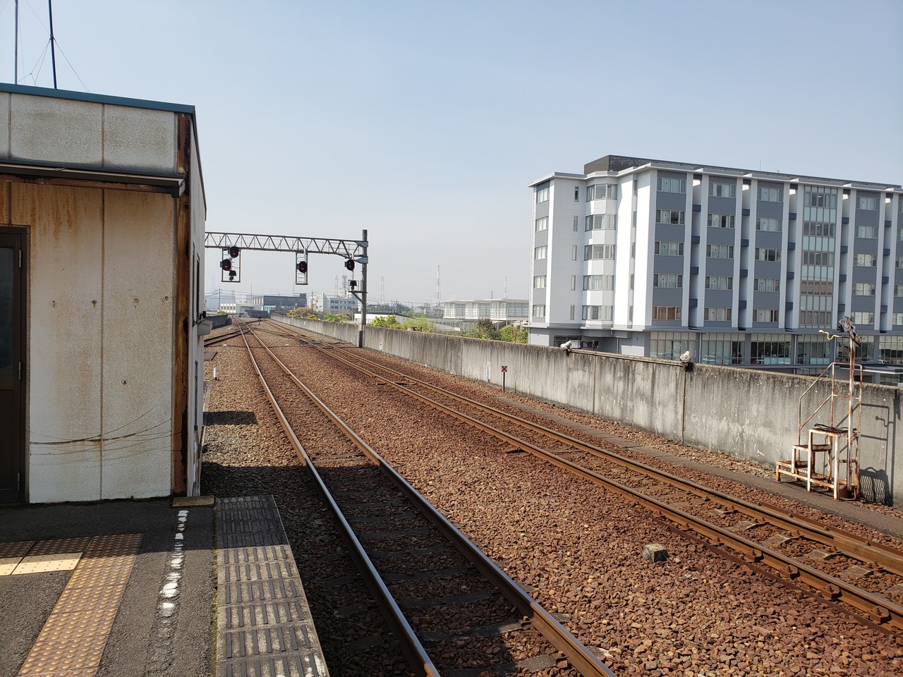 構内は単線上の1面2線ですが、貨物支線である港東線行きの列車が入る側線が2番のりばの脇にあります。