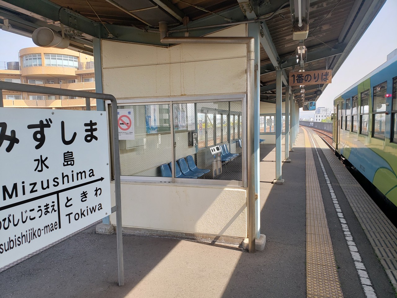 当駅は貨物支線の港東線が分岐しています。ホームの三菱自工前駅寄りには運転業務を行う部屋があります。