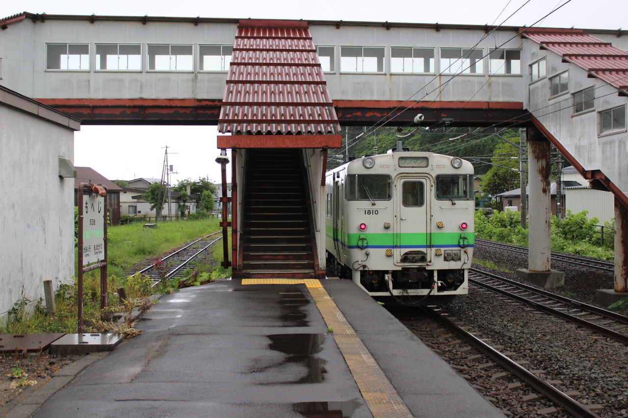 JR時代、2014年訪問時の駅名標です。JR北海道は駅ナンバリングを実施していますが、江差線や日高線など一部の区間は例外的に番号付与を実施していませんので、当駅もナンバリングシールは付与されていませんでした。
