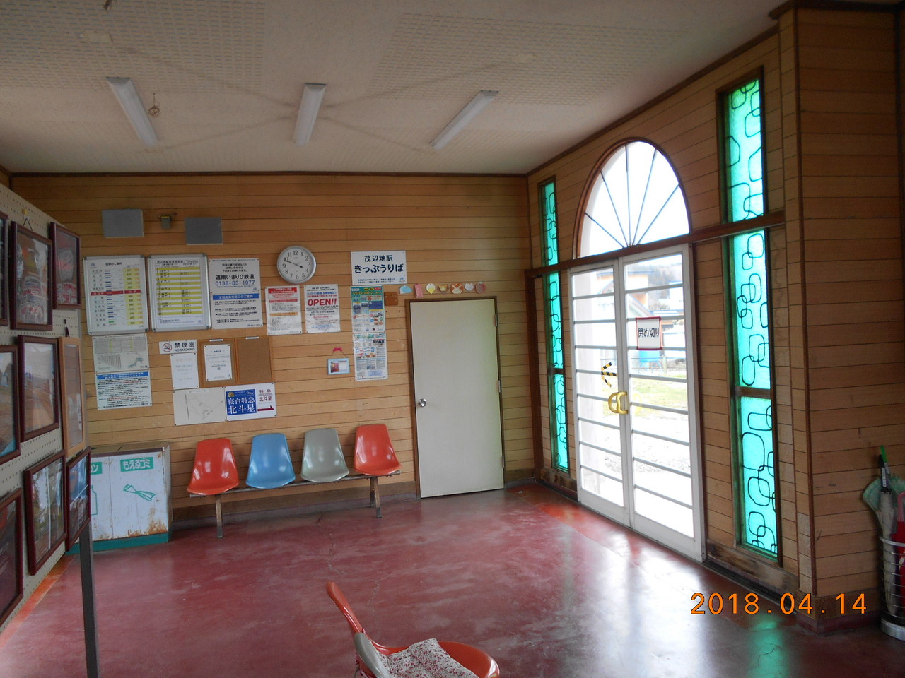 駅舎には事務室が設置されています。営業時間になると待合室側の小さな扉が常時開放され、小ぢんまりとした乗車券販売窓口が開設されます。2014年6月の記事編集時点でwikipediaの茂辺地駅ページには「JRから委託を受けた女性が駅舎で切符を売っていたが、現在は無人駅となっている。」と書かれていましたが、少なくとも私が訪問した2014年6月9日はしっかりと乗車券の販売が行われていました。