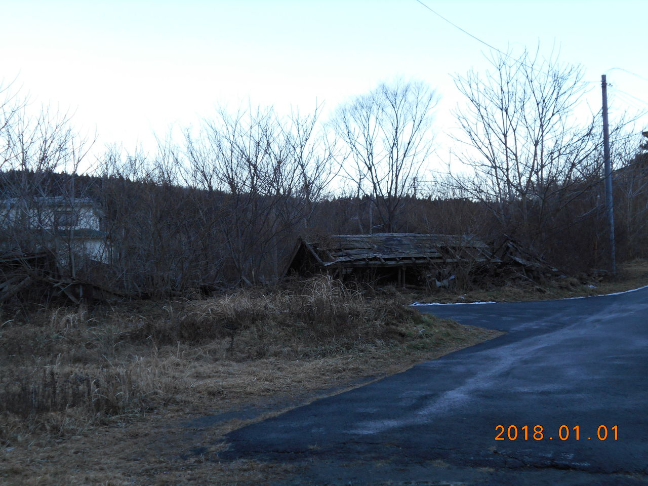 駅前の様子。。。廃屋があって、その近隣には多少の住宅が広がっています。こちら側は海ではなく県道側で、数分で「白浜」バス停があります。