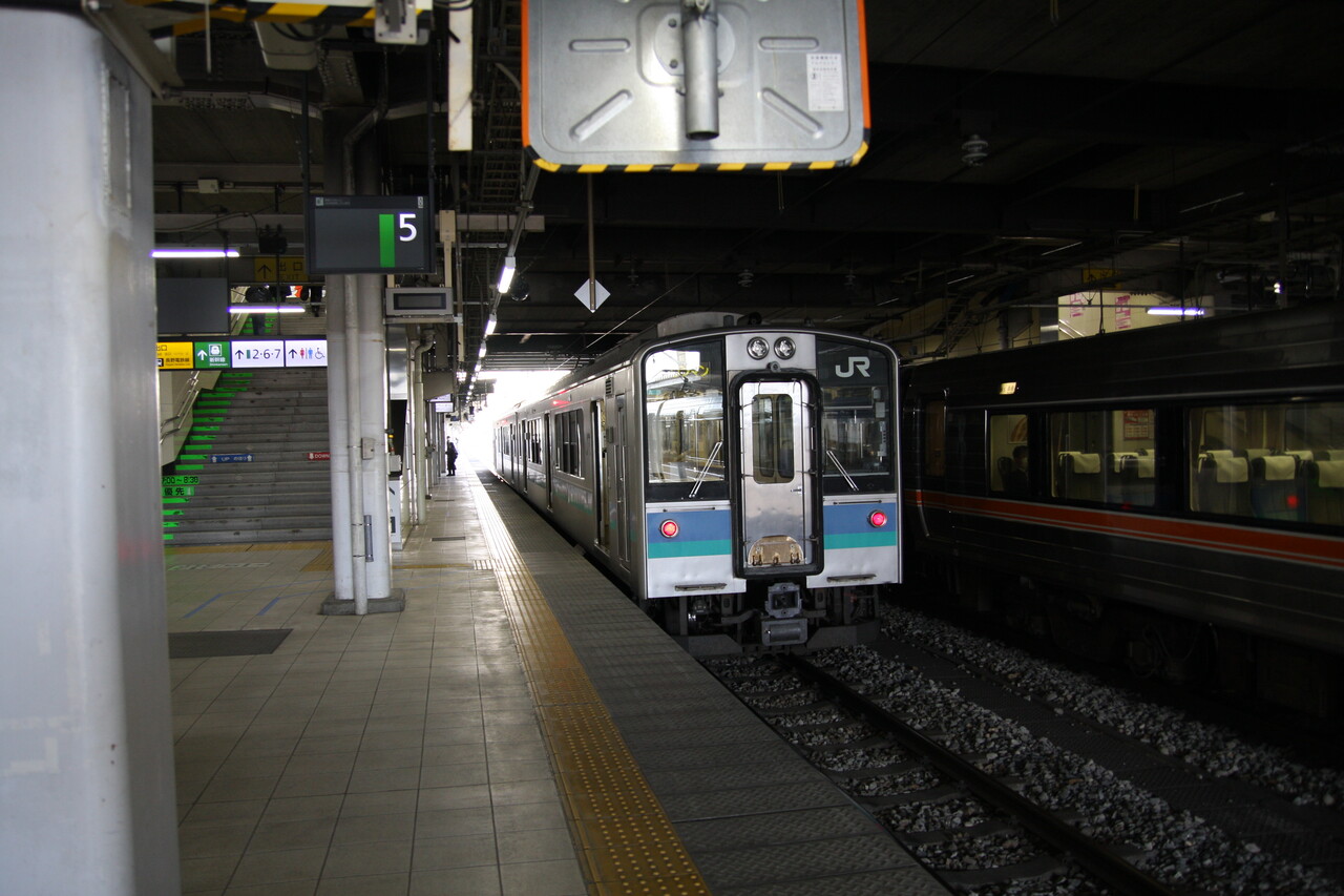 在来線の構内は3面5線。3番線と4番線は同一ホームで、中央で分断されていて、安茂里・篠ノ井方面が3番線、北長野・豊野方面が4番線を名乗っています。