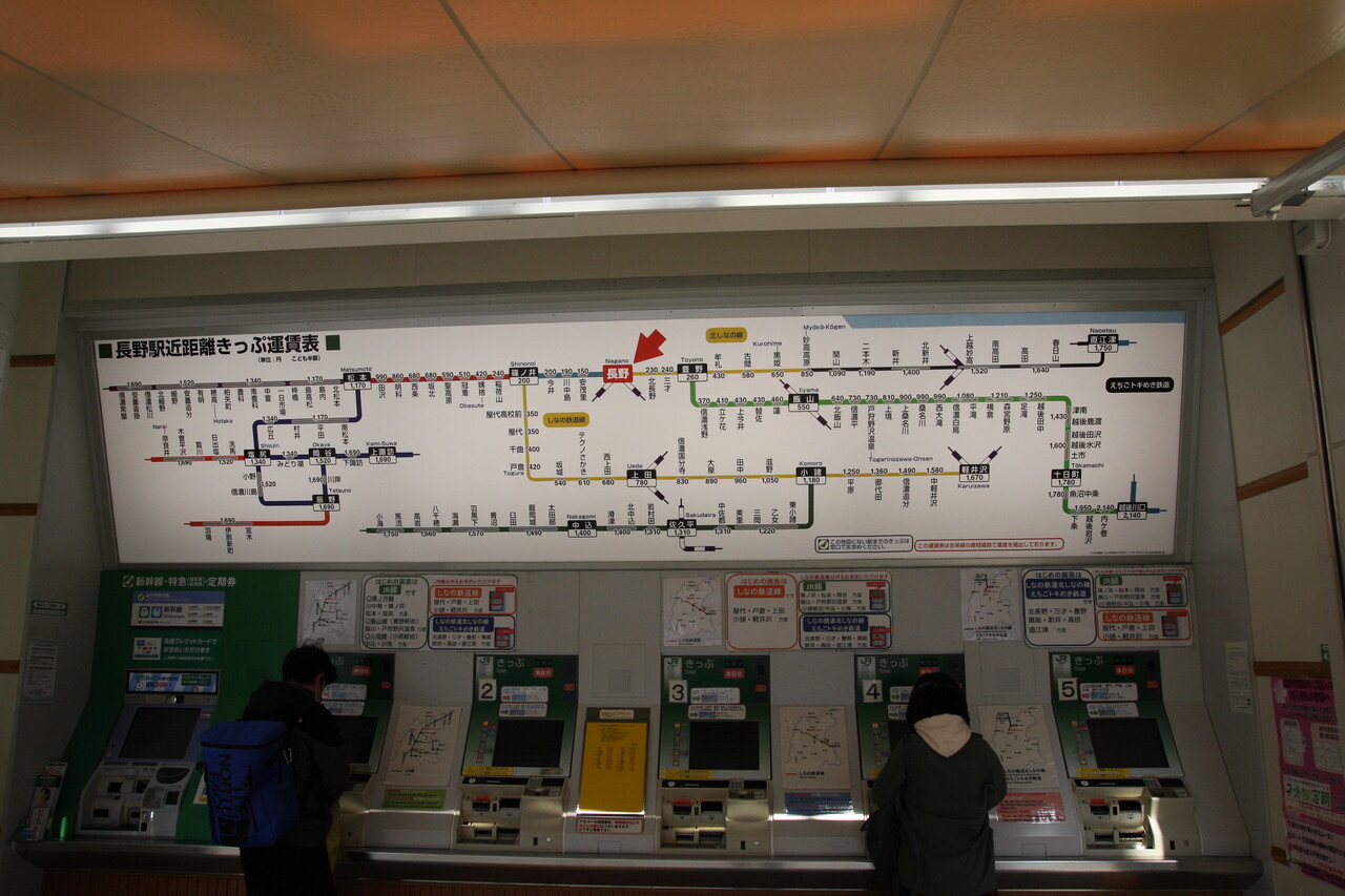 この券売機ではしなの鉄道線の乗車券も取り扱っています。