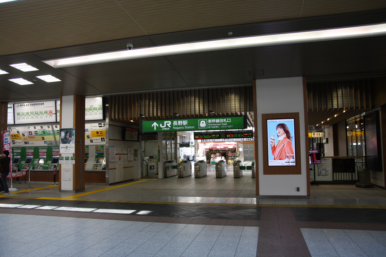 新幹線も発着する長野県の中心駅です。北陸新幹線金沢延伸にあわせ、2015年に改築された5代目の建物です。木目の部材を用いた「和テイスト」な雰囲気が素敵なデザインになっています。