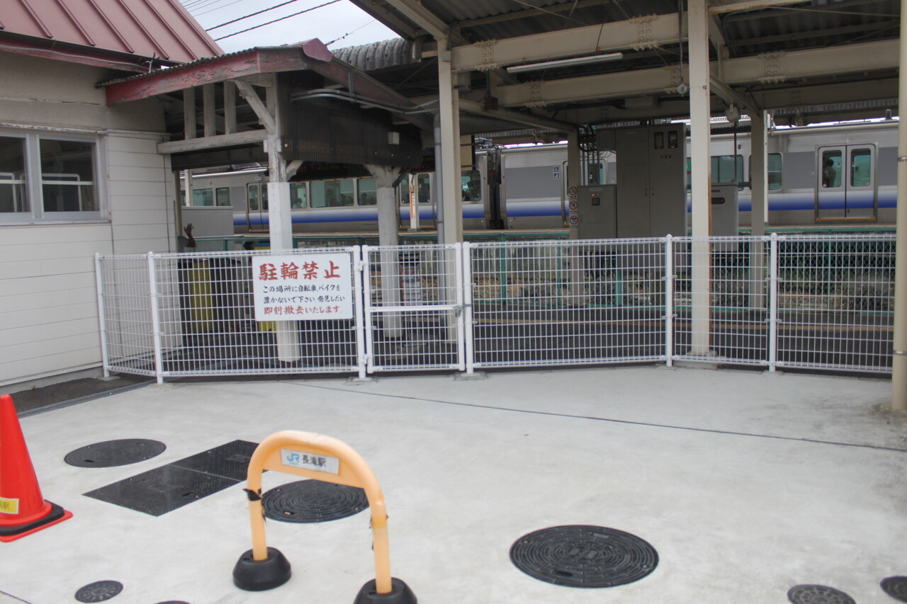 駅の横は空き地になっていて、JRさん等の業務用の自動車が駐車するスペースになるようです。この画像の右隣には地元自治体設置のきれいな公衆トイレがあります。